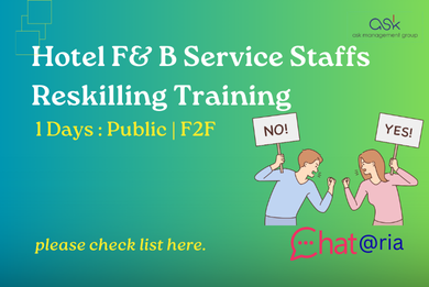 The ASK Management Group's 3-month on-the-job Hospitality Training Solutions (HTS) is a specialized program designed for upskilling, enhancing employment retention, fostering loyalty, and nurturing leadership abilities in the hospitality sector. Through practical, hands-on training, participants acquire industry-specific skills, develop leadership competencies, and contribute to a culture of excellence, ensuring sustained growth and success within the hospitality industry.